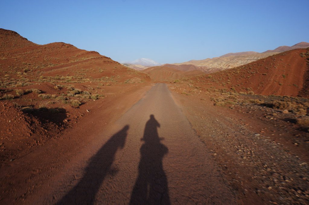 In unserem Riad ist es so still und dunkel , dass wir erst gegen neun Uhr aufwachen. Höchste Zeit um aufzubrechen. Schnell ist alles verstaut und Tom’s Fahrrad zusammengeschraubt, gefrühstückt und ab geht es auf die Strasse. Wieder brauchen wir zu lange um aus der Stadt heraus zu finden doch dann kommen wir gut voran. Bei der Mittagsrast während dem Genuss einer Tajine wird endlich die Daten SIM-Karte aktiviert um wieder mit der grossen weiten Welt verbunden zu sein.