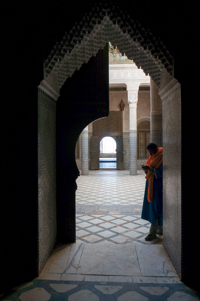 Das Tal wird zunehmend offener und die Hamada weicht der Sandwüste, der Rand der Sahara. Ideal für ein paar Fotos in den Sanddünen und dann ab auf die Strasse nach Zagora. Wir checken bei Chez Ali ein . Unsere Körper haben dringend eine Dusche nötig. Nach einem Berberwisky (Marokkanischer Tee) buchen wir die achtstündige Busfahrt zurück nach Marrakesh für morgen . Weil der Bus bereits um 07:45 Uhr losfährt fallen wir nach der obligaten Tagine und dem Tee müde ins Bett.