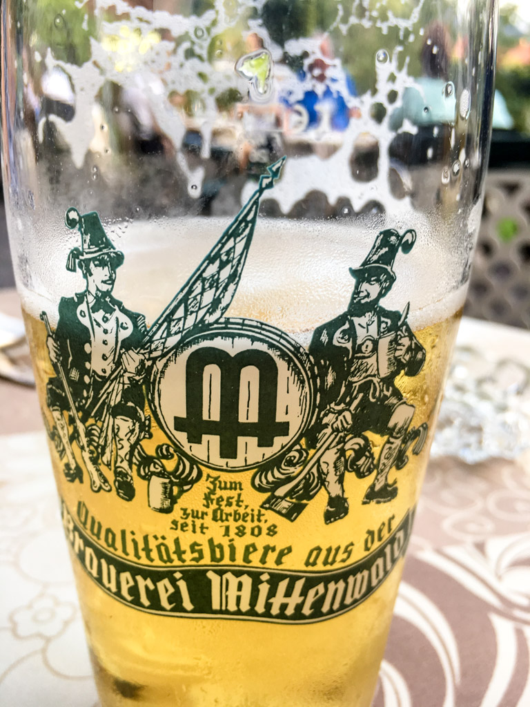 Was wäre Urlaub in Bayern ohne Weisswurst zum Zmorgen. Also machen wir uns auf nach Mittenwald in eine Gaststätte die eben dieses Frühstück bewirbt. So beginnen wir den Tag mit einem dunklen Bier, Weisswurst und Brezel. Und wir sind nicht die Einzigen.