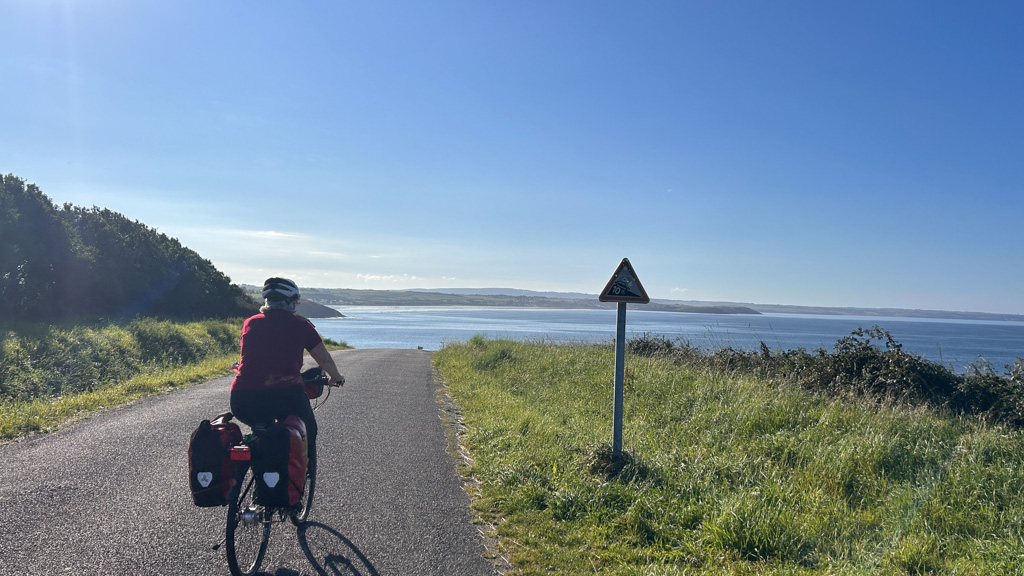 Einen Entwicklungshöhepunkt erlebte die Stadt Douarnenez Mitte des 19. Jahrhunderts als es nach der Erfindung der Konservendose durch Nicolas Appert möglich wurde Fisch langfristig haltbar zu machen. Insbesondere die Sardine, die ab 1836 als Konserve in französischer Monopolstellung war brachte hier Wohlstand. 35 Fischfabricken waren zur Blütezeit angesiedelt. Nur wenige blieben übrig. Die Häfen hier sind aber immer noch wichtig für den Fischfang. Dies nutzen wir für einen längeren Aufenthalt in dieser interessanten Küstenstadt. Zum Einstimmen gibt es erst mal Moules et frîtes direkt am Hafen bevor wir uns einen Überblick über die Stadt verschaffen. Man könnte es fast vermuten aber der Camping liegt über der Stadt, so steil, dass wir die Räder wieder einmal schieben müssen. Nicht das erste Mal an diesem Tag. Trotz allen Anstrengungen geniessen wir den westlichsten Zipfel der Bretagne in vollen Zügen.