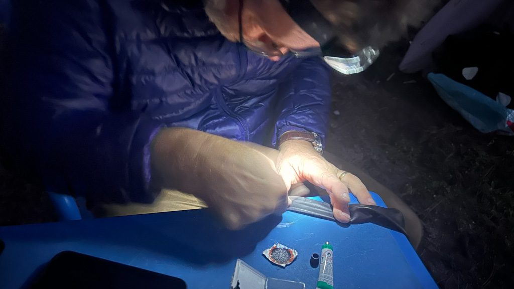 Notgetrungen musste ich letzte Nacht einmal in einer Regenpause das Zelt verlassen schliesslich habe ich nicht, wie der Zweite im Team, ein so praktisches, flaschenähnliches Gadget um die Notdurft zu verrichten.