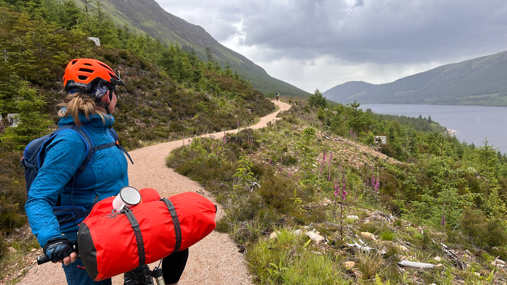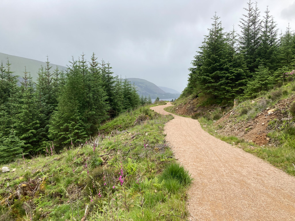 Eigentlich sollte die heutige Tour mehr oder weniger dem Caledonian Way also entlang dem Kanal folgen mit moderaten Steigungen. Doch wegen einer Baustelle, STRABAG sei Dank, mussten wieder ein paar hundert Höhenmeter zusätzlich machen. Es hat sich aber mehr als gelohnt. Weg vom Hauptverkehr auf einen flowigen Trail ging es hoch über dem Loch Lochy Richtung Fort William.