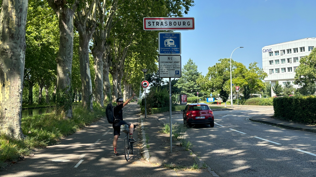 Nach 110 Km am ersten Radeltag sind wir froh endlich auf dem Stadtcamping von Strasbourg angekommen zu sein. Ideal um heute noch die Stadt zu erkunden und morgen zu dritt weiter zu Reisen. Leider zu früh gefreut. Der Campingplatz ist komplett ausgebucht.