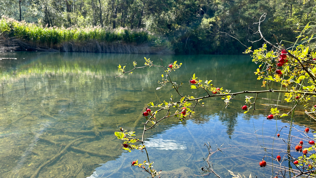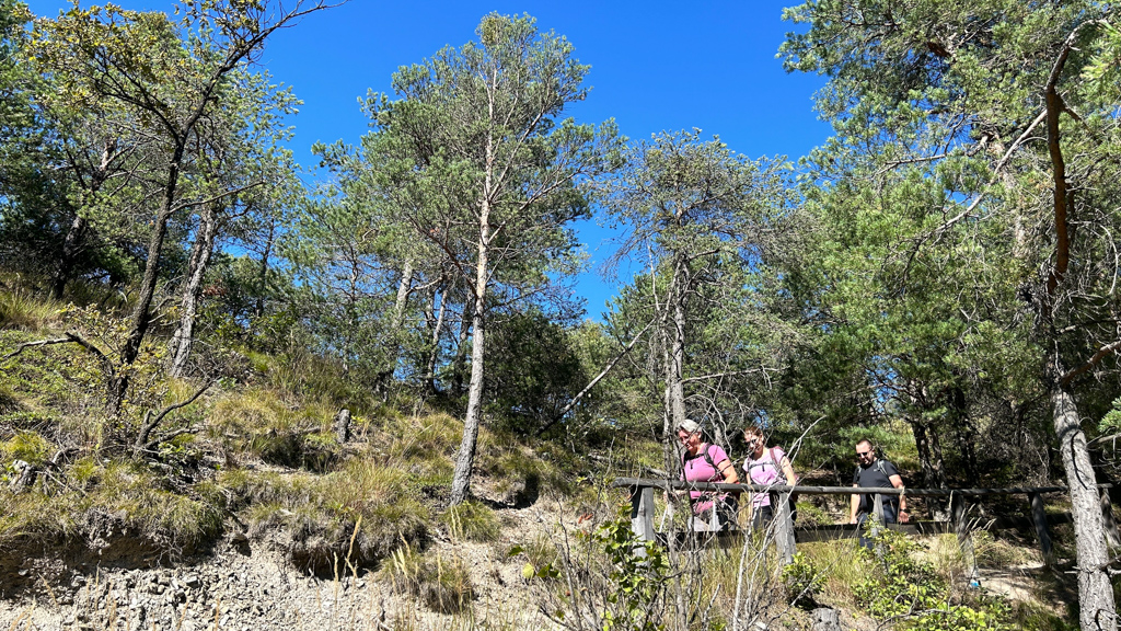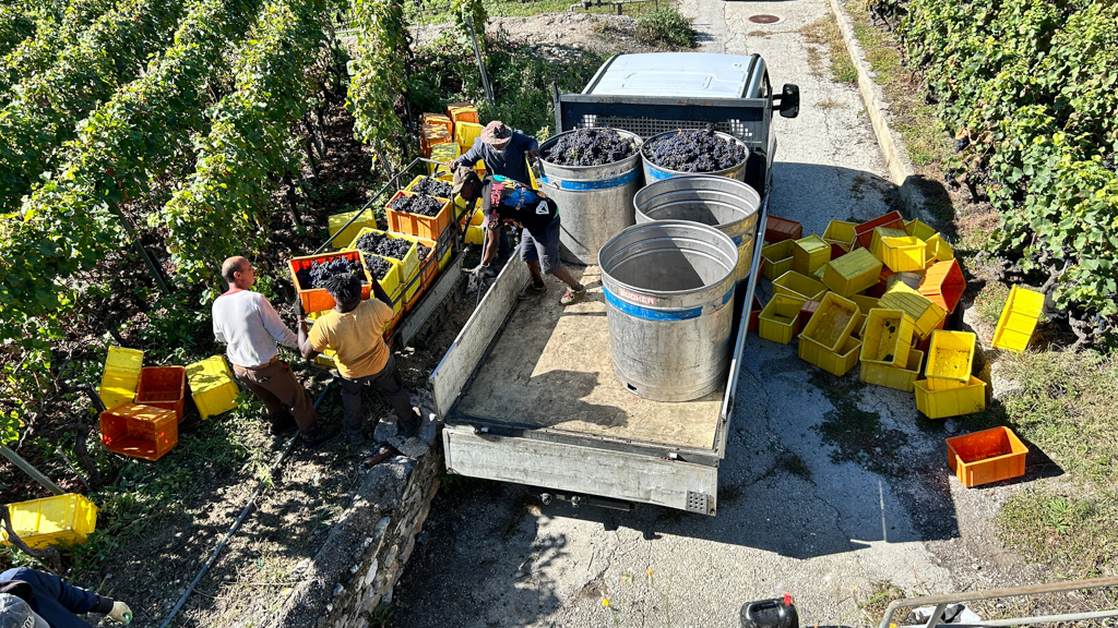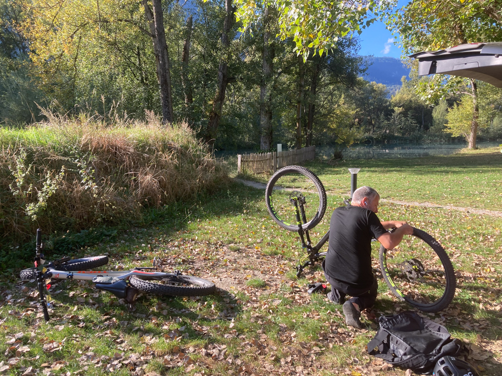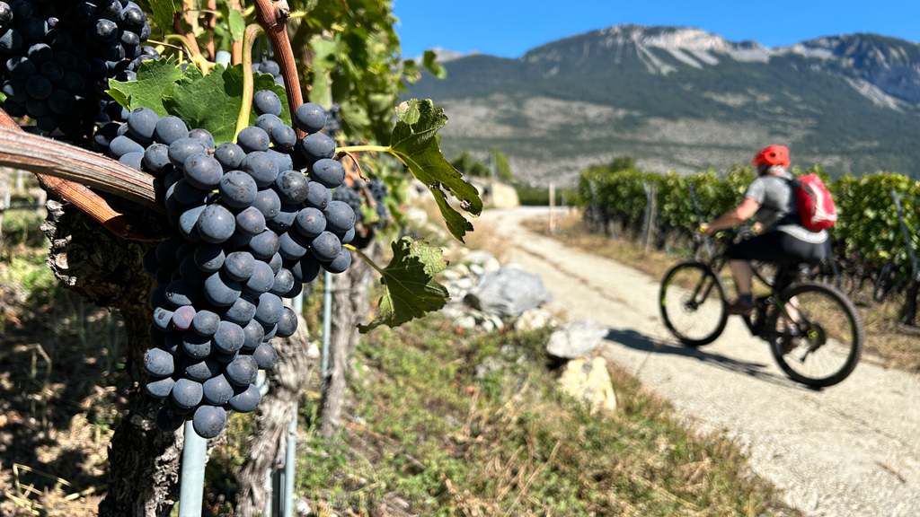 Das Ziel ist aber nicht das Wadtland sondern das Mittelwallis. Salgesch ein idealer Ausgangspunkt für diverse Aktivitäten in der Region. Auf dem Campingplatz Swiss Plage finden wir eine schöne Parzelle für unser Zelt. Die erste Nacht ist zwar um die fünf Grad aber immerhin trocken. Salgesch gilt auch als einer der trockensten Orten in der Schweiz. Da an vielen Orten in der Schweiz und Norditalien Regenfälle vorausgesagt wurden, haben wir ns für diese Ecke der Schweiz entschieden. Zudem weilt unsere Tochter mit ihrem Freund für ein paar Tage hier an diesem schönen Ort. Eine wunderbare Gelegenheit gemeinsam eine Wanderung durch den Pfynwald zu unternehmen und endlich einmal über die Buthanbrücke zu marschieren. Die Traubenernte hat bereits begonnen und der vergorene Traubensaft muss degustiert werden. Auch kulinarisch kommen wir nicht zu kurz hat doch die Wildsaison begonnen. Aber nicht nur Wandern steht auf dem Programm sondern auch einige Mountainbike Touren. Die erste Tour führt uns durch die Rebberge nach Varen und der „Grossi Wasserleitu“ (Suone) entlang zurück nach Salgesch. Richtig Spass macht der Downhill Trail zurück ins Dorf.