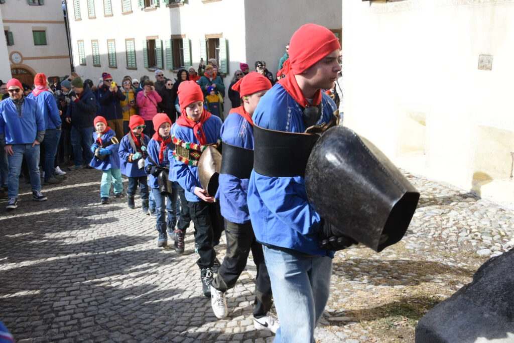 Traumhaftes Frühlinswetter erwartet uns in Guarda, der Heimat von Schellenursli. Weil dieses Jahr dieser traditionelle Anlass auf einen Samstag fällt hat es entsprechend viel Zuschauer.