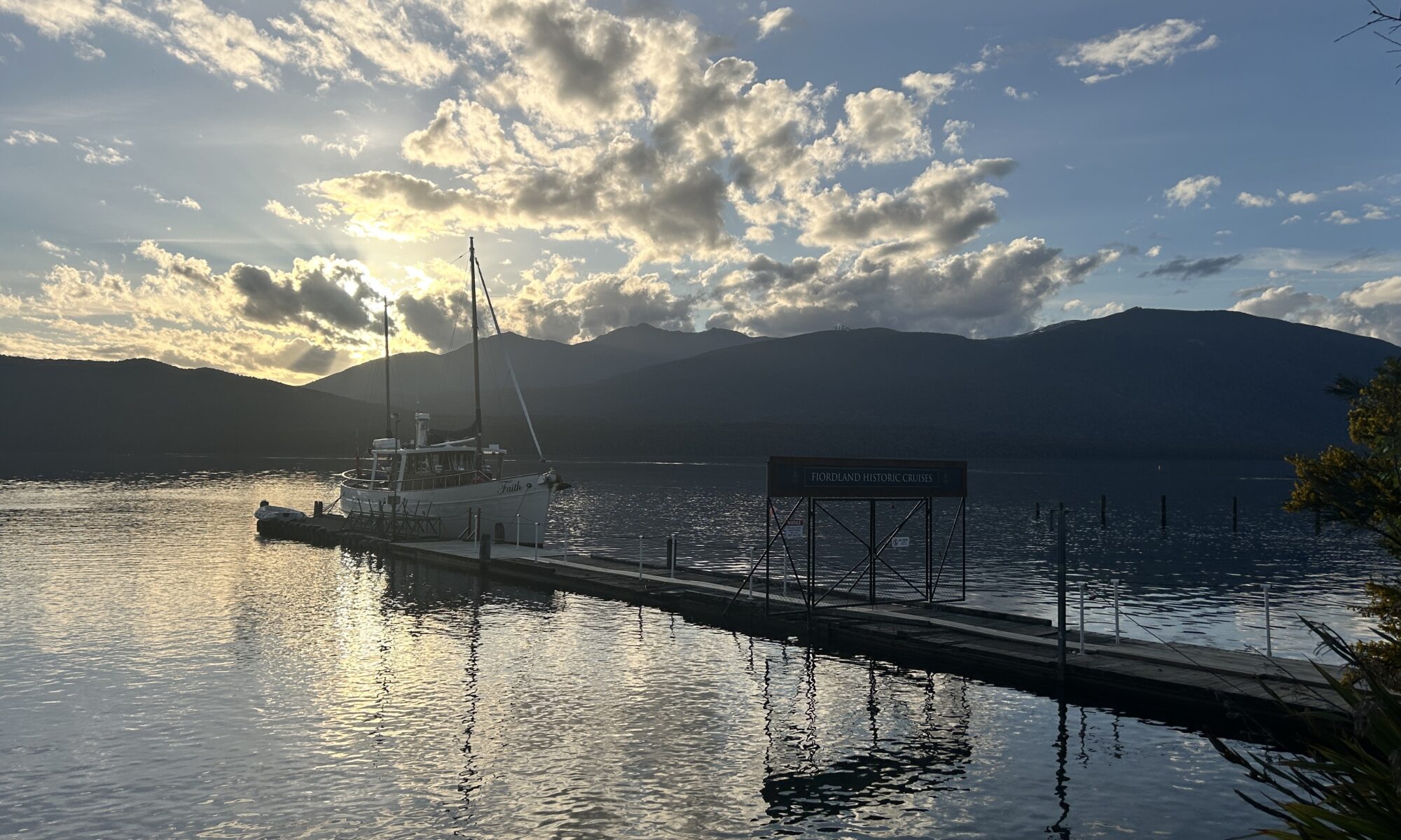 Schnell das Zelt aufgebaut zum Trocknen, geht es bereits weiter auf eine Exkursion zu einer Höhle mit Glühwürmchen. Für das nehmen wir das Schiff auf die andere Seite des Lake Te Anau. Ziemlich touristisch hier!
