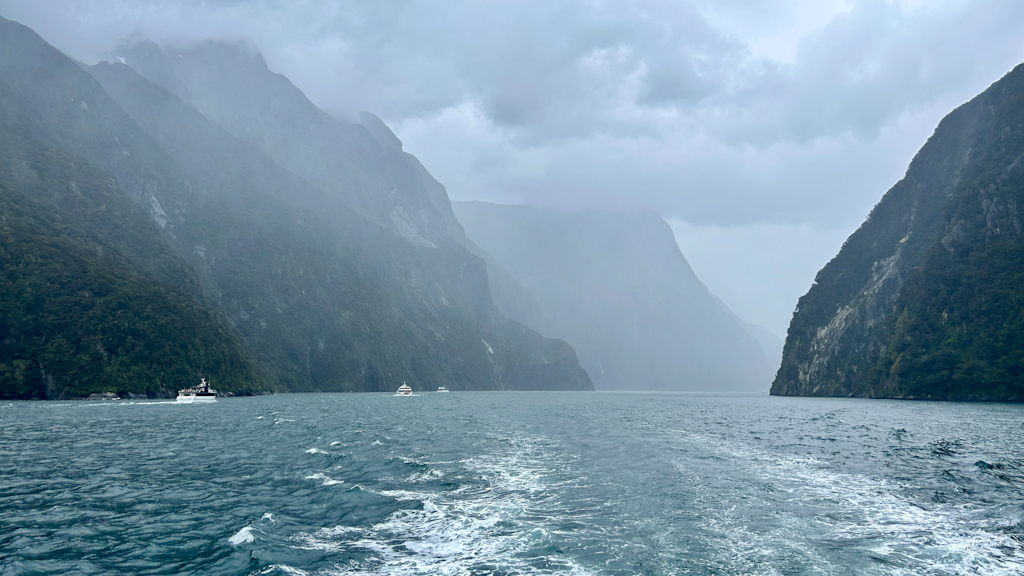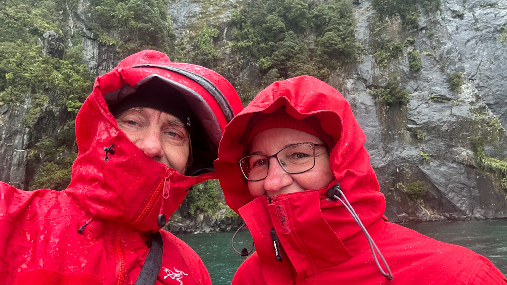 Den Rat von Marianne befolgen wir und besuchen den Milford Sound (Piopiotahi) bei Sturm und Regen. Die Gefahr, dass es in dieser Gegend regnet ist allerdings noch grösser als in Stein im Toggenburg. 7000 mm im Jahr soll es hier Niederschlag geben. Umso eindrucksvoller ist die Stimmung im Fjord.