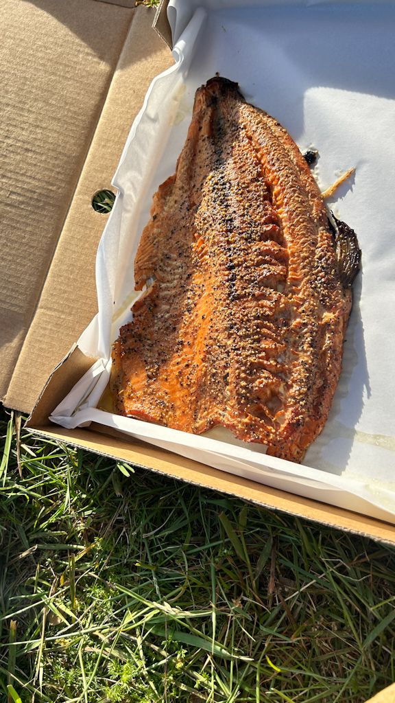 Unsere Zeltnachbarn aus demSüdtirol bringen uns frisch geräucherten Lachs und wir geben den beiden Jungs eine halbe Flasche neuseeländischen Weisdwein als Gegenleistung. Eine klare Win-Win Situation.
