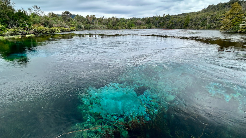 Der Tip des Campingplatz-Ehepaars war goldrichtig, einen Abstecher zu den Waikoropūpū Springs zu machen. So tief blaue Quellen haben wir zuletzt nur in Albanien gesehen.