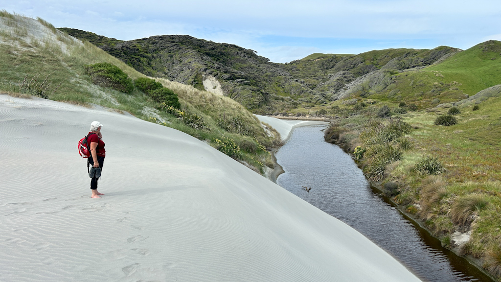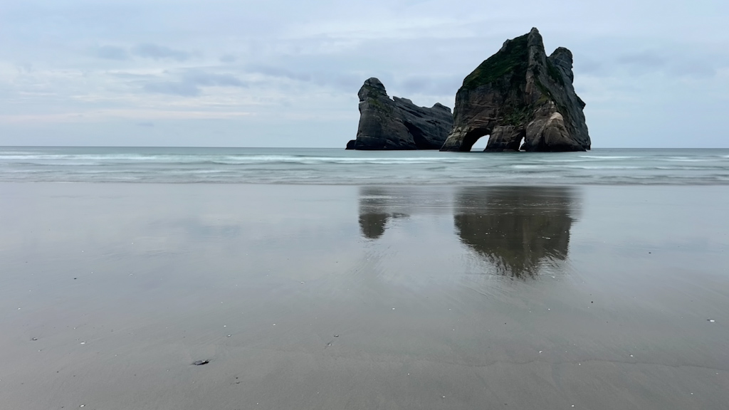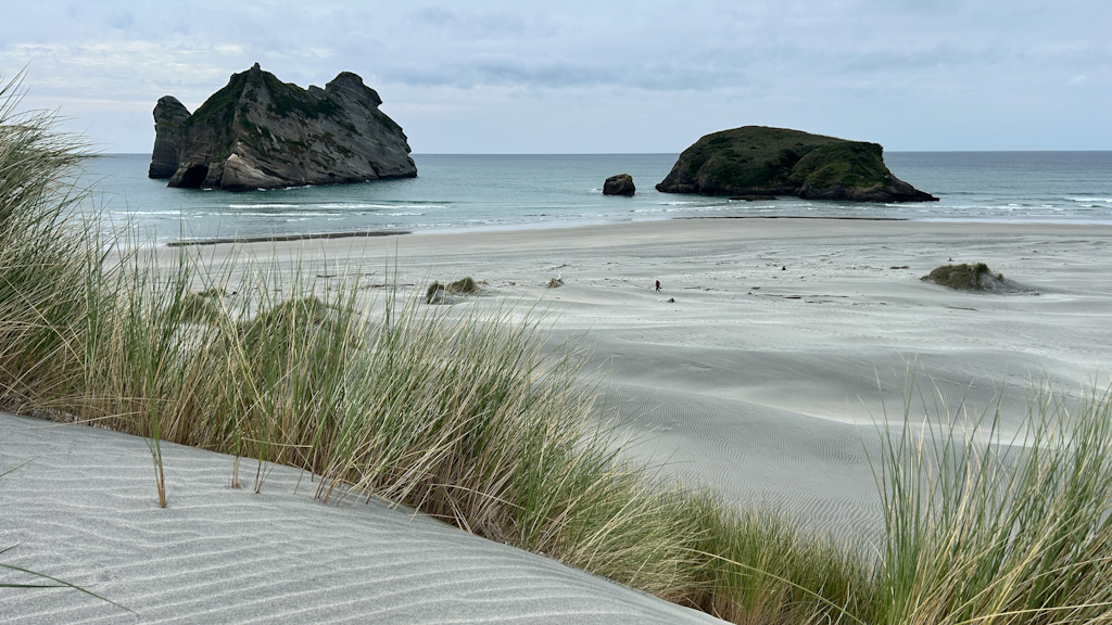 Der heutige Abendspaziergang wird etwas ausgedehnt, über die bekannte Wharariki Beach, über den Top Hill Trail, bis zumnördlichsten Punkt der Südinsel, dem Cape Farewell.