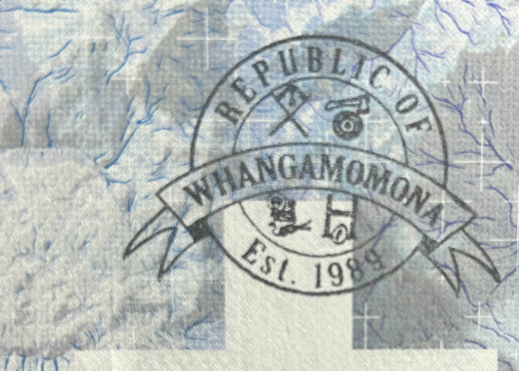 Nach ein paar kurzen Fragen woher wir kommen und ob in der Schweiz schon Schnee gefallen sei, ist der Stempel im Pass. Wir sind offiziell eingereist in die unabhängige Republik Whangamōmona.