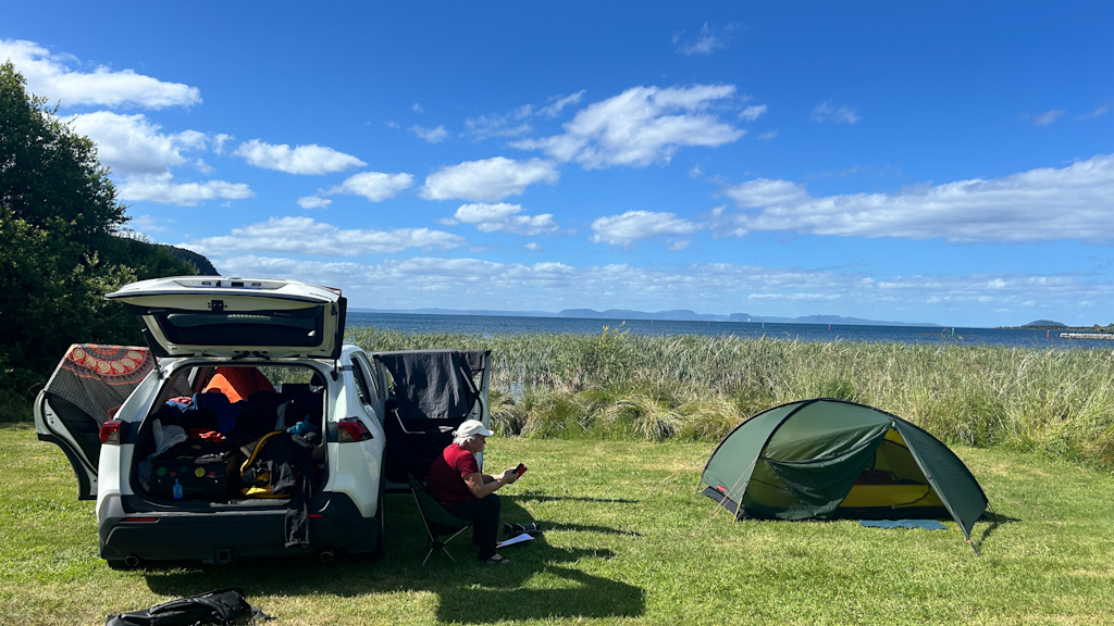 Hier an der Südseite des Lake Taupo blubbert es in der Erde stetig und es steigt heisser Wasserdampf auf. Es wimmelt hier nur so von heissen Quellen. Der See ist uns zu kalt zum Baden, darum gibt es eine Planänderung und wir biegen ab zu einer Thermalquelle. 7$ Public Pool / 14$ Privat Pool steht am Eingang. Wir müssen sparen nach den Pub Besuchen der letzten Tage und wählen das öffentliche Bad. Gleich mehrere Schulklassen geniessen einen zur. Zeit Schwimmunterricht im warmen Wasser. Es geht aber nicht lange und der Schulbus wartet vor dem Eingang. So haben wir ab 15:00 Uhr „Private Pool für 7$“.