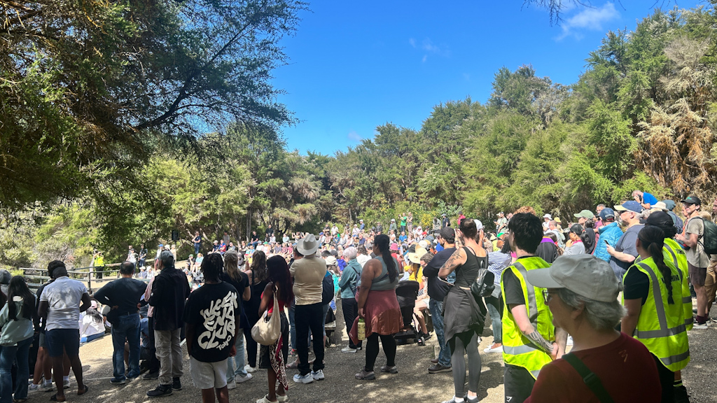 Bis jetzt war ich eigentlich sehr positiv überrascht von Neuseeland, aber auf dieses Instagram Spektakel könnte ich gut verzichten. Punkt 10:15 Uhr wird der „Lady Knox Geysir“, unter Beifall von hunderten jubelnder Menschen, mittels organischer Seife, zum Leben erweckt. 15 Meter hoch jagt die Wasserfontäne in den Himmel. Alles begleitet durch live gesungene Maori Klänge. Kaum vorbei geht es gleich weiter zur nächsten Atraktion, dem Champagner Pool. Der Eintritt kostet gleich viel wie zweimal zwei Personen übernachten auf dem Campingplatz. Alles ist wie immer zweisprachig angeschrieben aber hier nicht Englisch-Te Reo Māori sondern Englisch-Chinesisch. Unbestritten eine eindrucksvolle Landschaft aber eben auch ein Touristen Hotspot sondergleichen. So fahren wir nur kurz nach Rotorua, dem Ausgangspunkt für viele Atraktionen wie Zorbing, Zippline, Hubschrauber Rundflüge usw. All dies suchen wir aber nicht.