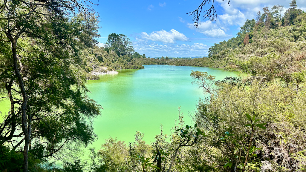 Auf der Fahrt nach Rotorua fahren wir an einem Wegweiser zu einem Thermal Park vorbei und entschliessen uns, wie so oft, kurzerhand abzuweigen. Der Parkplatz war praktisch leer aber es stand überall Personal in gelben Westen.