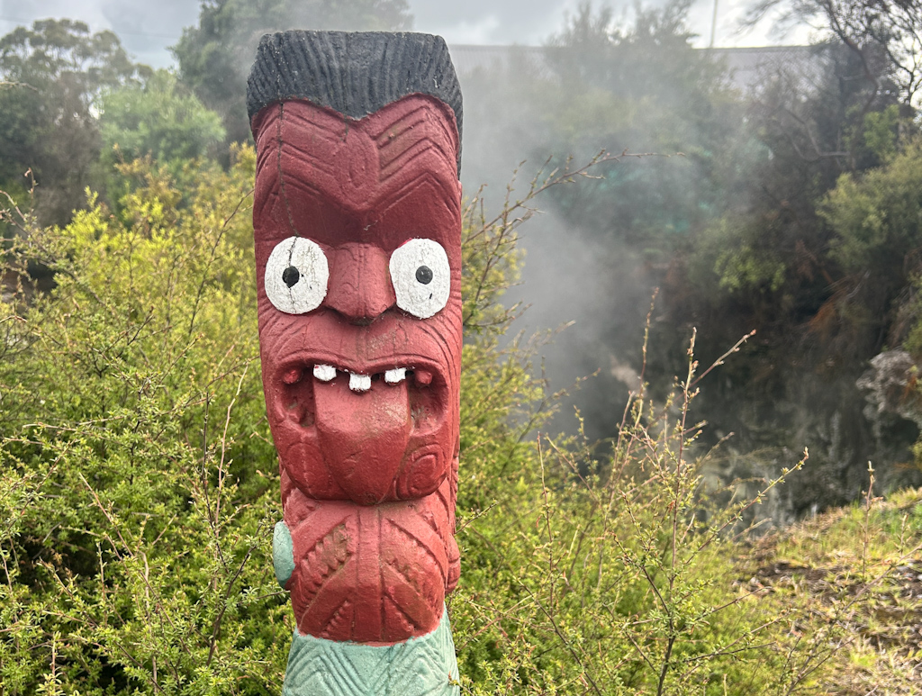 Whakarewarewa die Kurzversion des Maoridorfes mit dem langen Namen: TEWHAKARÉWAREWATANGAOTEOPETAUAAWAHIAO was soviel bedeutet wie „der Sammelplatz für die Kriegstrupps von Wahiao“.