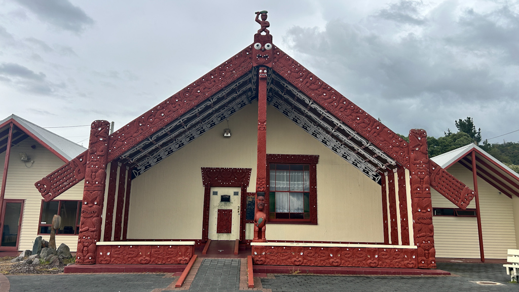Natürlich sind wir heute Morgen die ersten welche kurz nach Sonnenaufgang in die heissen Quellen des Waikite Valley steigen. Wollen wir das warme Wasser vor dem Frühstück nochmals geniessen bevor es Richtung Raglan geht. Auf dem Weg liegt das besagte Maoridorf welches wir gerne noch besichtigen möchten. Wir schaffen es gerade noch in die 10:00 Uhr Führung und sind pünktlich zurück bevor es wieder heftig zu Regnen beginnt. Für die nächsten Tage sind in Auckland und Umgebung heftige Gewitter, Regenfälle und Tornados angesagt. Unser Zelt steht sturmsicher im Surfer-Hotspot Raglan.