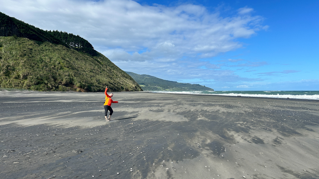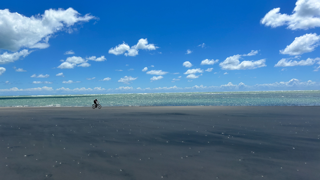 So geil! Mit Rückenwind auf dem feinen, schwarzen Sand mit dreissig Sachen über die Beach brettern.