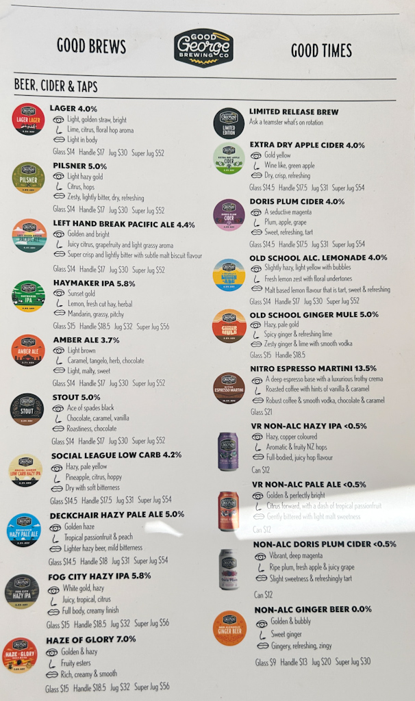 Fast in jedem Dorf hat es ein Ortsmuseum welches die Geschichte der Einwanderer erklärt. Die Sehenswürdigkeiten sind sehr gut beschildert. Überall gibt es Zugang zu Trinkwasser und sauberen öffentlichen Toiletten. Der Verkehr ist sehr entspannt so, dass problemlos mit dem Auto in die Innenstädte gefahren werden kann. Es hatte immer genügend Parkplätze, welche auch noch bezahlbar sind. Ein Tag im Parkhaus in Auckland direkt am Hafen kostet gerade mal umgerechnet zehn Franken. Für Fahrradfahrer und E-Trotinett gilt Helmpflicht. Ausserorts darf mit 100 Km/h gefahren werden. Kann eine Kurve nicht mit der üblich signalisierten Geschwindigkeit gefahren werden ist die Kurvengeschwindigkeit signalisiert. Es wird sehr rücksichtsvoll gefahren. Unfälle passieren dennoch, wie viele Kreuze entlang der Strassen zu verstehen geben. Das Essen war bis auf eine Ausnahme sehr gut (Die Ausnahme habe ich selber gekocht beim Verwerten der Reste). Es gibt eine hervorragende Kaffee- und Bierkultur. Weine trinkt man offenbar besser aus Australien, wie uns ein Herr im Supermarkt zu verstehen gab. Das Wetter war so abwechslungsreich wie die Bierauswahl im Pub. Die Temperaturen lagen zwischen 8 Grad in der Nacht und 28 Grad in den letzten Tagen in Auckland. Starkwind und Regen war oft dabei.